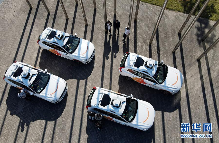 10月31日,智能网联自动驾驶汽车停在上海汽车会展中心门前(无人机照片)。 当日,约30名受邀市民来到位于上海嘉定的上海汽车会展中心参加滴滴智能网联汽车自动驾驶体验活动。自2020年6月27日上海启动智能网联汽车规模化示范应用以来,一批智能网联汽车开始在滴滴出行App上开放服务,市民通过滴滴出行App报名并通过审核后,可以前来乘坐网约自动驾驶汽车,在真实道路上规划的示范区域内体验智能出行。 新华社记者 方喆 摄