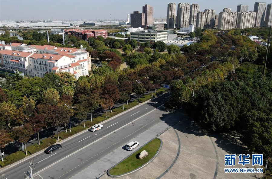 10月31日,一辆自动驾驶汽车(中)行驶在道路上(无人机照片)。 当日,约30名受邀市民来到位于上海嘉定的上海汽车会展中心参加滴滴智能网联汽车自动驾驶体验活动。自2020年6月27日上海启动智能网联汽车规模化示范应用以来,一批智能网联汽车开始在滴滴出行App上开放服务,市民通过滴滴出行App报名并通过审核后,可以前来乘坐网约自动驾驶汽车,在真实道路上规划的示范区域内体验智能出行。 新华社记者 方喆 摄