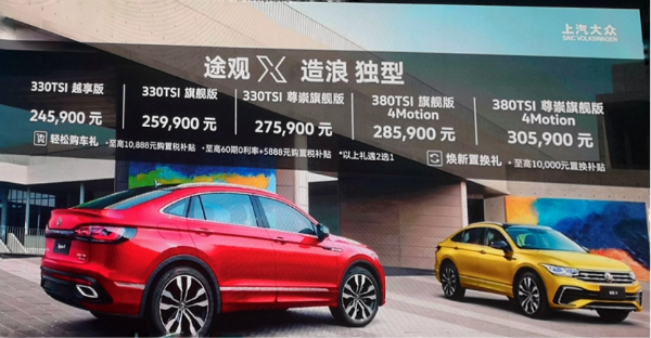 原标题:潮酷型格 智联驾控 上汽大众轿跑SUV途观X上市售价24.59万元起