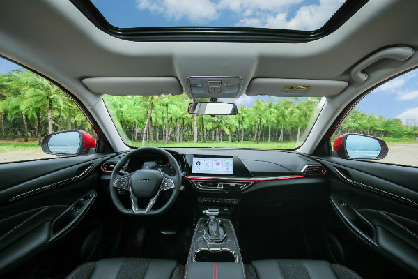 内饰部分,长安欧尚X5承接了外观塑光设计美学理念,以立体图形构建光影层次,打造立体超感座舱。同时,微微左偏的中控台、切角设计的10.25寸中控屏,与液晶仪表、空调区按键形成高低相接、错落有致的结构,看起来简洁大方且更有立体感。此外,长安欧尚X5还采用了红色缝线和红黑撞色一体化的赛车座椅,让整个内饰充满了运动感。