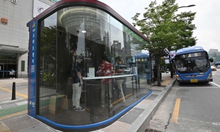 韩国首尔现高科技公交候车亭