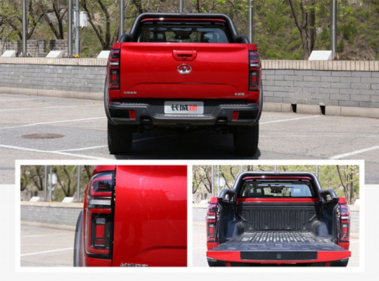 尾部方面,越野版也配备了全LED灯组,后厢配备坡道梯卡槽,方便装卸货物,两个外露的拖车钩也为救援提供了便利性。