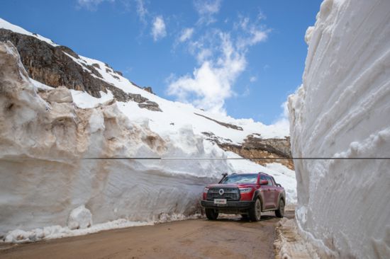 另外,长城炮皮卡越野版丰富、硬核的越野配置也为这次测量登山提供了有利的支撑。原厂配备的“三把锁”,能够让长城炮越野皮卡轻松应对各种路况。同样为原厂配备的涉水喉,轻松趟过冰河,而9500磅绞盘则能带来更强大的脱困和施救能力。蠕行模式、坦克掉头、7种全地形驾驶模式等多样的技能,能帮助车辆涉足更深入的极端地带。长城越野皮卡凭借着自身强大的实力,很好完成了护航任务。