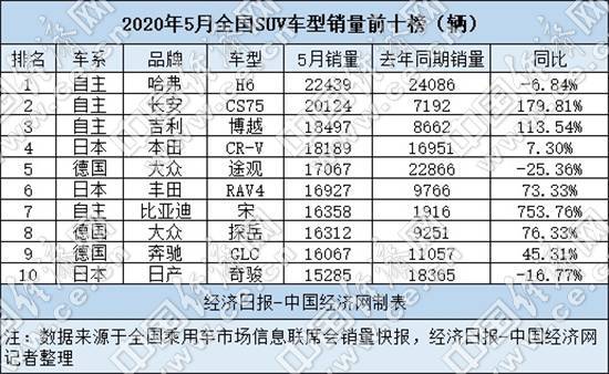 同时,“强者恒强”在SUV市场也愈发明显,“SUV车型5月销量前十榜单”中尽是“老面孔”,排名前五车型更是与上月如出一撤,继续呈现出自主诸强激战正酣、德系日系你追我赶、高档车品牌“主流化”等诸多亮点。