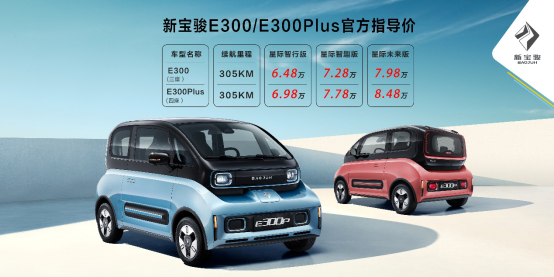 日前新宝骏首款新能源纯电动汽车E300、E300Plus通过直播正式发布,售价6.48万元到8.48万元。