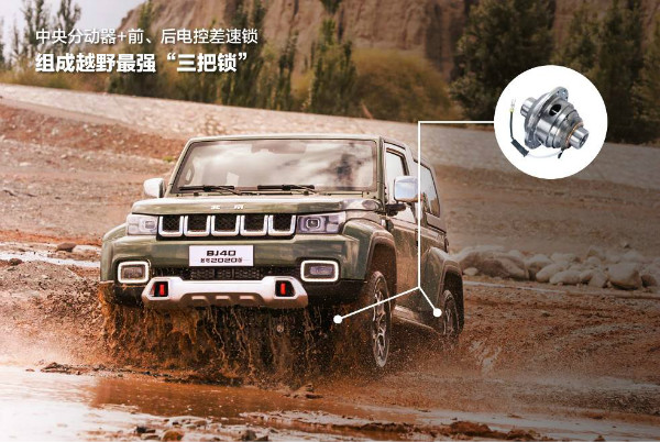 即将正式上市的BJ40致敬2020版,携以下“四把锁”,一展越野最强实力:分动器实现“中差锁”BJ40致敬2020版采用专业电控分时四驱系统,这套系统中的分动器能够实现前、后轴硬链接,相当于一把加强版的“中差锁”。前、后差两把速锁BJ40致敬2020版前、后轴均配备电控差速锁,其可以在车辆遇到打滑、交叉轴时实现两个半轴的刚性连接,使两个车轮得到相同动力。最好的差速锁:“短轴”短轴是越野圈公认的“最好差速锁”。凭借短轴自带优势,BJ40致敬2020版,能带来更大纵向通过角,减少被困可能,相当于多了一把“短轴锁”。