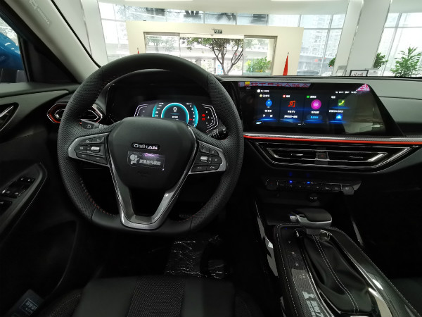 与外观相比,新车内饰能看出长安家族式的设计元素,比如中控大屏的造型就给人一种熟悉的感觉。另外,新车在内饰配色方面加入了红色饰条,这样的设计能让更多消费者接受。并且,运动化的座椅采用了镂空设计,皮质与织物的搭配,也让座椅看起来更具质感。