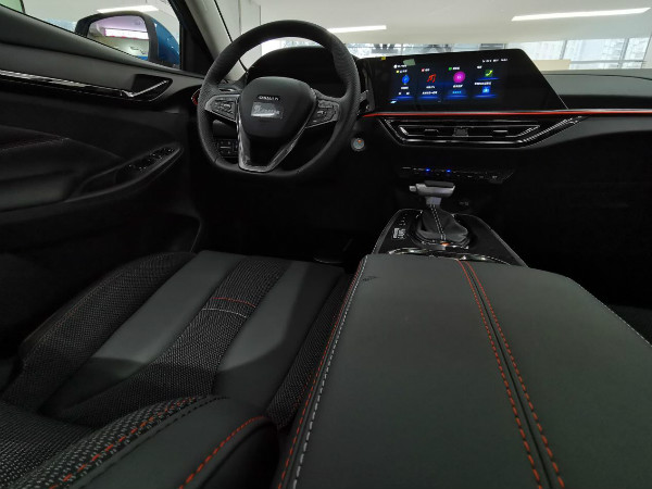 中央扶手区运用了悬浮式的设计,俯看起来就像滑板形态立于之上。回形空调出风口采用了三层镀铬设计,红色内饰点缀,与中控竞速光带相呼应,左右对称分布实现了视觉上的平衡。两侧空调出风口采用多边形造型颇为精致,视觉和触觉都处理得恰到好处。