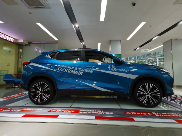 为了凸显运动风格,欧尚X5采用“宽体低趴”车身设计理念,侧面来看双腰线设计平直犀利,搭配1860mm同级最宽车身、超长前引擎盖设计和1:2同级最紧致车窗占比,视觉效果更有冲劲和动势。