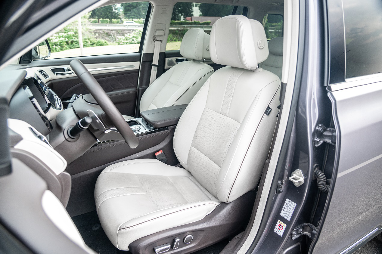 传祺GS8长宽高分别为4835mm*1910mm*1785mm,轴距长2800mm,大空间让传祺GS8有更多的施展空间,为驾乘者带来舒适的驾乘感受。车内的座椅进行了重新调整和优化,配合记忆软绵等材质,座椅的靠背和头部更贴合人体曲线。前排座椅采用高级的豪华真皮拼接超纤麂皮(世联),触感细腻、填充饱满,即使是长时间乘坐也不觉得累。