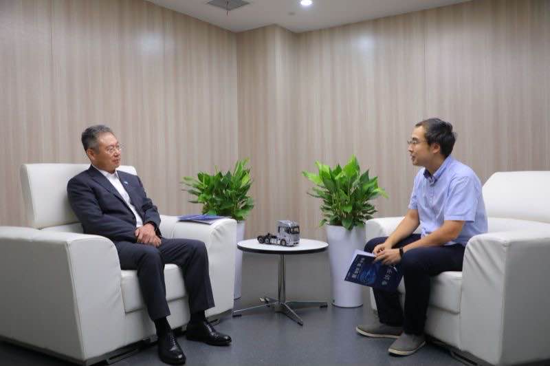 中国一汽总经理助理、一汽解放董事长、党委书记胡汉杰(左)接受经济日报-中国经济网记者采访