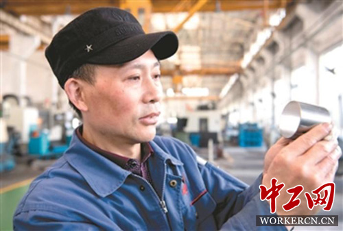 “五一”前,在中国兵器集团武汉重型机床集团公司车间厂房内,《工人日报》记者见到研磨钳工魏红权时,他正弯腰弓步,均匀研磨一个高精度的零件。