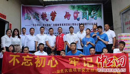 中工网讯(工人日报—中工网记者刘友婷)为弘扬中华民族传统美德,让“助残扶弱、传播文明、服务社会”的志愿服务精神得到更好发扬,10月10日,由汕头市职工义工协会主办,广东省粤东技师学院汽车工程系党支部、中建五局汕北大道党支部、中建二局泰盛科创园党支部、关爱义工协会党支部协办的“助残扶梦,与爱同行”——“不忘初心、牢记使命”主题教育活动走进汕头喜憨儿洗车中心,开展帮扶心智障碍孩子公益活动。