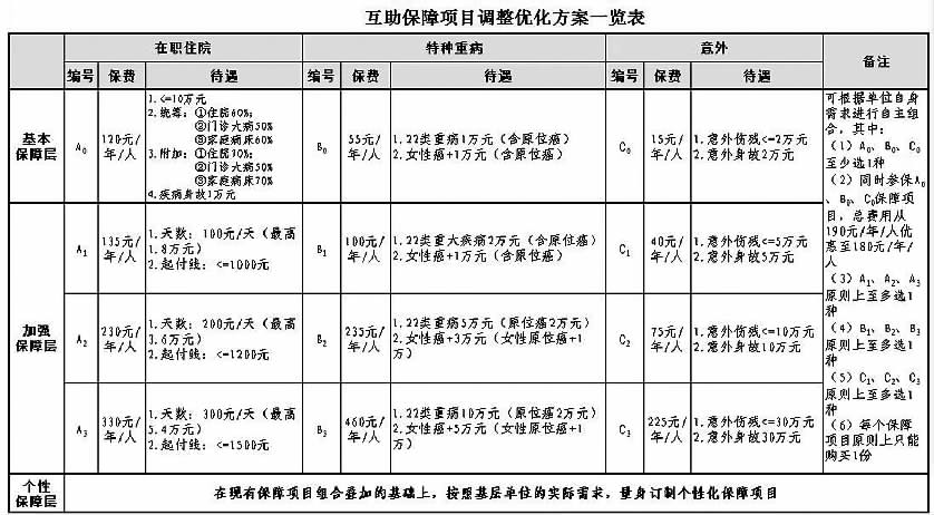 ——三个层次层层递进,个性化精准服务进一步加强。组织职工参保的单位必须在“基本保障层”中的“在职住院保障”、“特种重病保障”和“意外保障”三类保障项目中选择一项参保,也可同时参保三项;如果要加强保障力度,可以在“加强保障层”中选择一项叠加参保。在参加基本保障层和加强保障层基础上,如果还需要进一步叠加保障力度,单位可按实际需求,选择“个性化保障层”,量身订制单位职工个性化的互助保障项目。