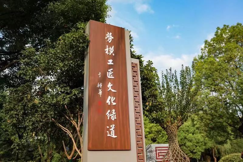 为大力弘扬劳模工匠精神,劳模工匠绿道围绕“一心”(不忘初心)、“二篇章”(劳模篇章和工匠篇章)、“三主题”(劳模工匠文化,红色文化,杭州江干文化),建设工匠之心等12个文化景观,通过书卷、印章等中国元素承载的劳模工匠文化,集中展现新时期劳模工匠风采。