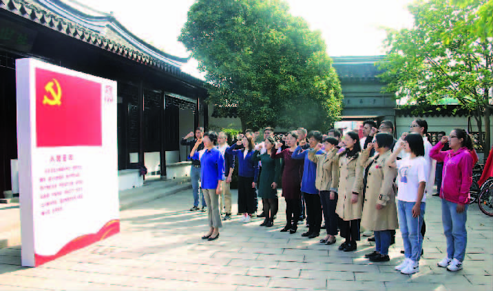 在中共奉贤县委旧址,讲解员杨阿姨生动形象地叙述了李主一、沈志昂、周大根等革命烈士的红色事迹,党员干部们聆听后深受感动,纷纷上前与党旗合影。区总工会党组书记、常务副主席张辉凤带领大家重温入党誓词,进一步唤醒党员们的入党初心,增强对党员身份的自豪感、认同感、荣誉感,坚定理想信念,筑牢思想根基。