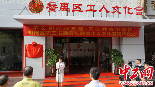 梁艳燕在致辞中表示,多年来番禺区工人文化宫一直没有正常运作,今年以来,番禺区总工会根据市区委巡察第7组的反馈意见认真进行整改,在新的番禺工人文化宫建成之前,收回原来出租的工会物业修缮改造成活动场所,为广大职工提供一个新的服务平台。番禺区工人文化宫的投入使用,必将有力改善广大职工的文体活动和技能培训条件,带动职工群众文体活动和学习提升。番禺区总工会举行“不忘初心跟党走·同心共筑中国梦”职工书画摄影展暨区工人文化宫揭牌仪式,既标志着番禺区工人文化宫正式投入使用,也是工会丰富职工群众文化生活的有力举措。(左捷)