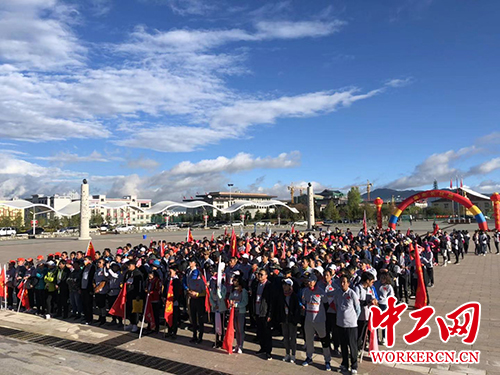 10月11日,为欢庆中华人民共和国成立70周年华诞,纪念红军长征胜利83周年,贯彻落实国务院健康中国行、体育强国的行动部署,切实为“不忘初心、牢记使命”主题教育活动营造浓厚氛围,州总工会、州教育体育局、州直机关工委、州妇联、团州委联合举办2019年全国重阳登高健身大会迪庆会场暨重走长征路活动。来自全州各行各业的126支队伍,500多人参加活动。
