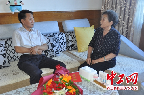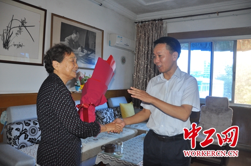中工网讯 为庆祝新中国成立70周年,表达党和政府对劳模和困难职工的关怀和温暖,结合开展“不忘初心 牢记使命”主题教育,9月26日,江西省九江市人大常委会副主任、市总工会党组书记、主席周美祥带头走访慰问全国劳模和困难职工代表,向他们送上节日的慰问和祝福,由此正式启动全会党员干部与困难职工“一帮一 结对子”国庆走访慰问困难职工活动。