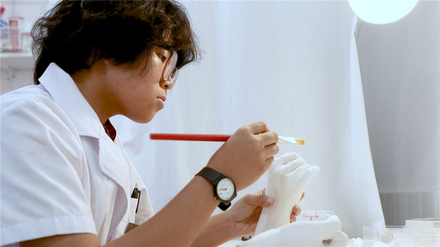 从业7年来,周易每天的工作都从倾听故事开始。每位顾客都有一个故事,曾经有一个小狗,它的名字叫“Red”,患有先天心脏病,主人想在狗生最后一段时间里给它做个纪念,周易就来到Red家,把它的小爪子复制下来,然后做成了一对雕塑,给Red的主人留下了珍贵记忆。