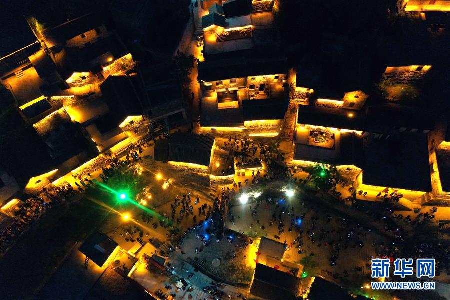 10月7日拍摄的河北省涉县大洼村夜景(无人机照片)。 近年来,河北省涉县将乡村旅游与传统文化、农业休闲深度融合,发展特色乡村游,促进当地群众增收。 新华社记者范世辉摄