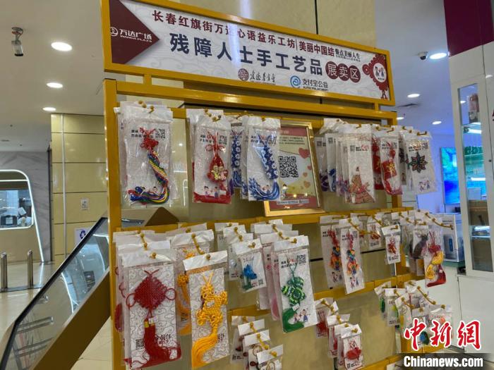 商场的展卖区,摆放着残障人士制作的中国结。 谭伟旗 摄