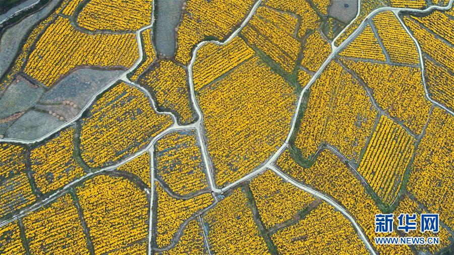 10月27日拍摄的金溪村金丝皇菊基地(无人机照片)。新华社记者 杨文斌 摄