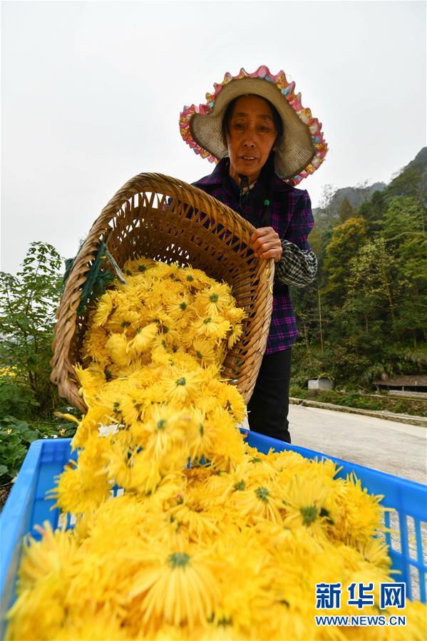10月27日,村民在金溪村收获金丝皇菊。新华社记者 杨文斌 摄