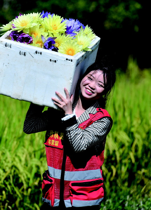 与此同时,一些花产品开始往深加工方向发展。覃向鲜种植的九品香莲,除供应花苗外,形成了集莲花种植、采摘、烘干、包装和销售的完整产业链,打造花茶产品,带动下陶村30多户农户就业。