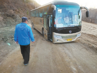 山路坑洼不平,车辆数次遇险,老党员们需要不时下车找石头垫在车轮下才能通行。