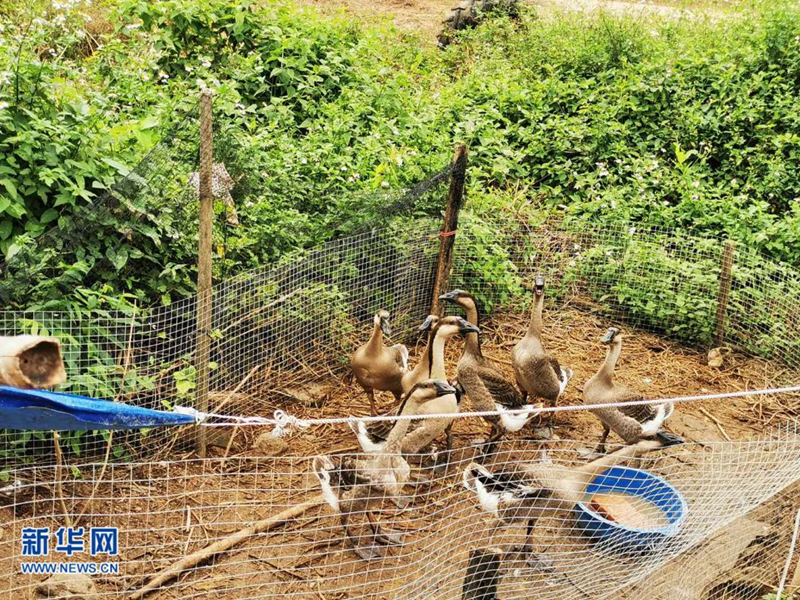 吴定耀家饲养的鹅 新华网 唐斓 摄