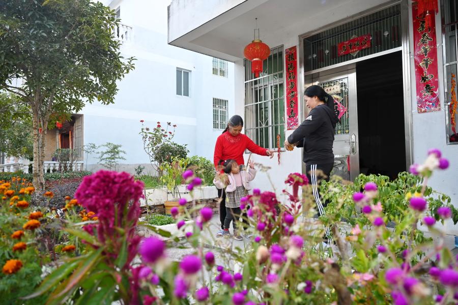 11月10日,屏南县寿山乡白玉新村村民在家门口聊天。福建省宁德市屏南县积极实施造福工程危房改造及易地扶贫搬迁,并把搬迁后的产业帮扶作为工作重点。当地在安置点周边依托蔬菜、食用菌等种植业,探索建立产业扶贫长效机制,促进搬迁群众稳定脱贫。新华社记者 林善传 摄