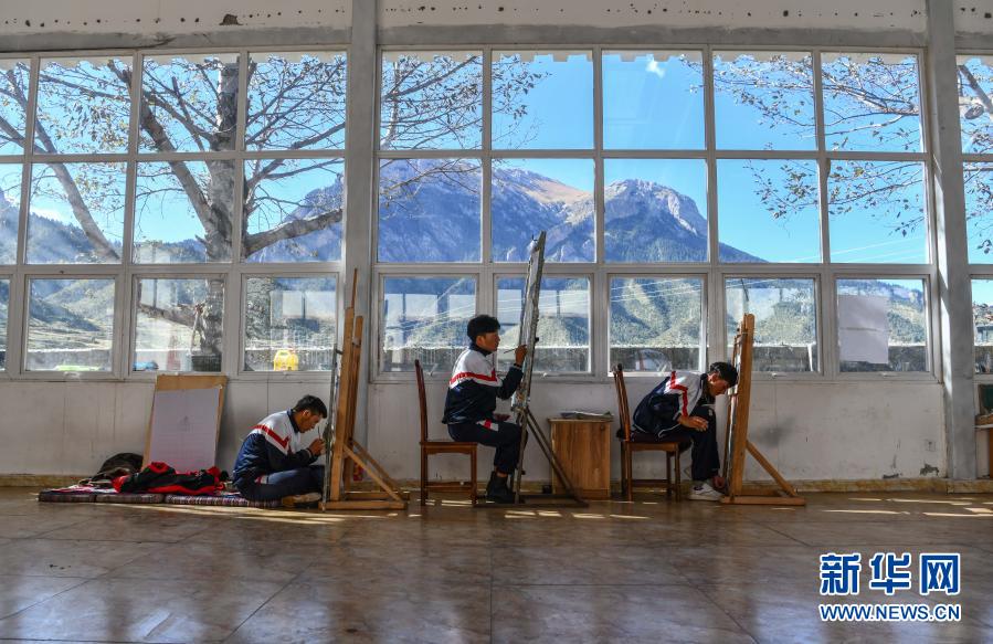 在西藏昌都市卡若区嘎玛乡的民族手工艺培训基地,学员们在学习画唐卡(10月3日摄)。新华社记者 晋美多吉 摄