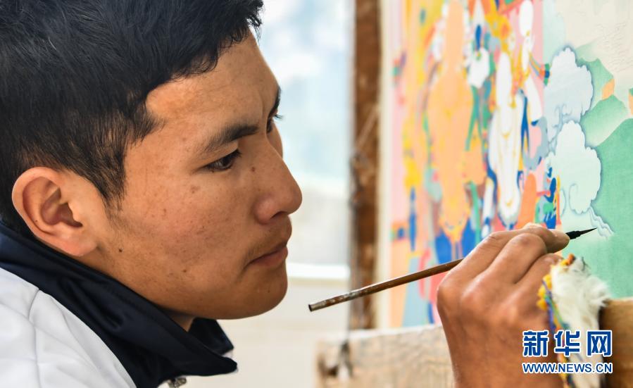 在西藏昌都市卡若区嘎玛乡的民族手工艺培训基地,学员在学习画唐卡(10月3日摄)。新华社记者 晋美多吉 摄