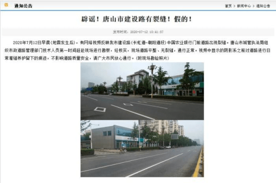 【真相】7月12日,唐山市古冶区发生5.1级地震。随后便有“道路出现裂缝”的图片和视频在网上流传。唐山市古冶区组织住建局、交通局、外环线管理处、经济开发区等部门指派专门人员摸排全区道路,经核实,无网传图片中反映的现象,交通道路情况良好。唐山市城管执法局组织市政道路管理部门技术人员赶赴建设路(长虹道-朝阳道段)进行勘察,经核实,现场道路平整、无裂缝,通行正常。网传视频中显示的阴影系之前对道路进行日常灌缝养护留下的痕迹,不影响道路质量安全,请广大市民放心通行。