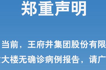 当前,王府井集团股份有限公司百货大楼无确诊病例报告,请广大网友不信谣、不传谣。百货大楼已向公安机关报案,并将依法追究相关造谣者的法律责任。