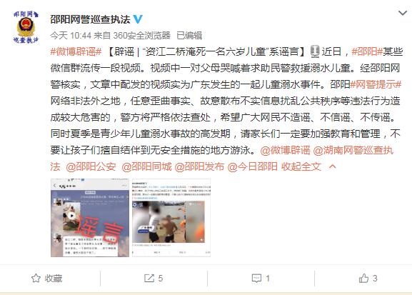辟谣|“资江二桥淹死一名六岁儿童”系谣言