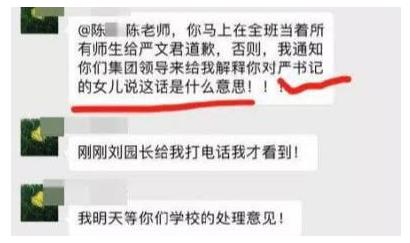 最典型的,去年有位叫严春风的书记,他的夫人(事后证实是“前夫人”)在某幼儿园家长群里,因老师抱怨其子女,要求老师“马上在全班当着所有师生给严某某道歉”。舆论关注下,有关部门对严书记展开调查。