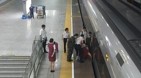 7月14日晚,广州南站。3名旅客在明知所乘高铁列车已停止检票的情况下,强行翻越闸机闯入站台。见列车已关门,其中一女子王某先是情绪激动地拍打列车玻璃要求开门,随后将一只脚伸入列车与站台之间的缝隙企图阻止列车发车。据说,她要赶回去上班!