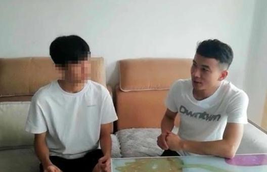 (男生胡某某(左)被解除刑拘回到家后,当地教育局工作人员上门慰问)