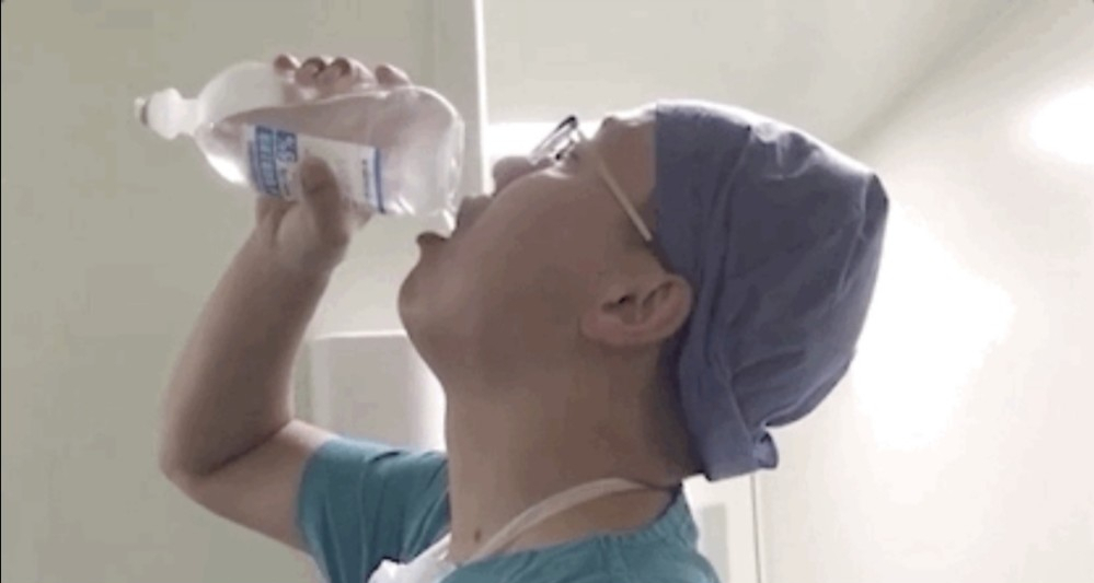 喝葡萄糖的医生在凌晨四点做完了一台历时4小时的脑干出血手术,又饿又渴,并且这瓶葡萄糖水会计入科室成本,不会让病人付钱;