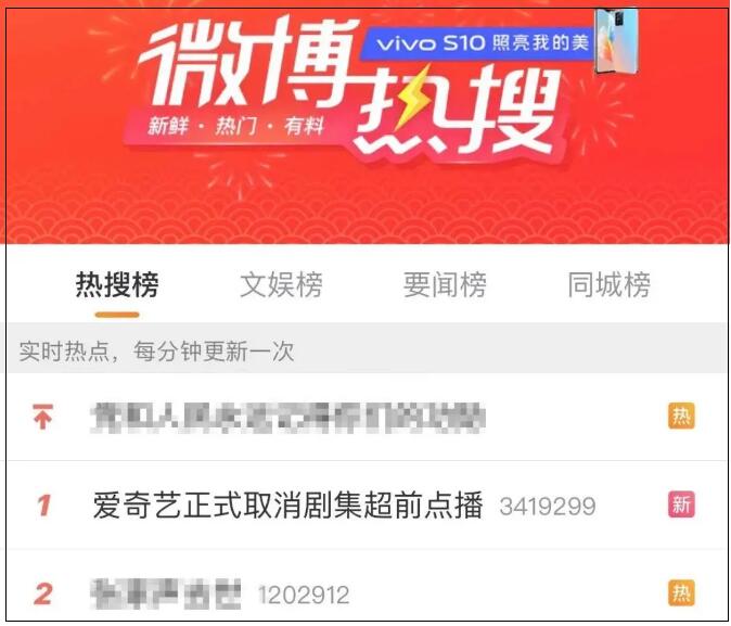 (取消超前点播的新闻冲上热搜首位 截图自微博界面)
