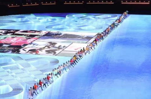 还有,“构建一朵雪花”的桥段,不只是创新无限,更给人们带来暖意和期待。开幕前,大概没有多少人会想到,写有各代表团名字的引导牌,会变身为一朵朵雪花,而这朵朵来自世界各地的雪花最终还会汇聚成一朵璀璨的大雪花,且成为本届冬奥会独特的火炬台。它们以火炬为中心,被象征着和平的橄榄枝所缠绕,紧紧联结在一起。这不正是奥运格言“更快、更高、更强、更团结”最好的具象表达吗?