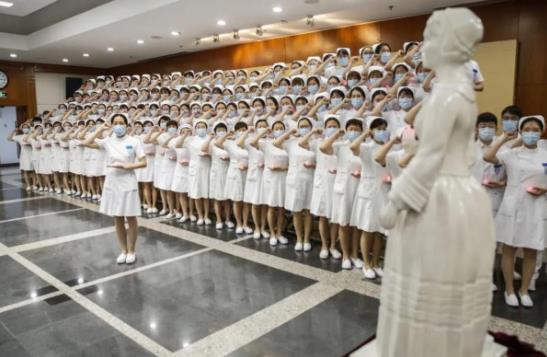(新入职护士参加授帽仪式时重温南丁格尔誓言 图源 新华社)
