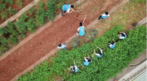 长沙市雨花区梅怡岭小学的孩子们在校园的蔬菜种植园中采摘、翻土。 新华社记者 陈泽国 摄