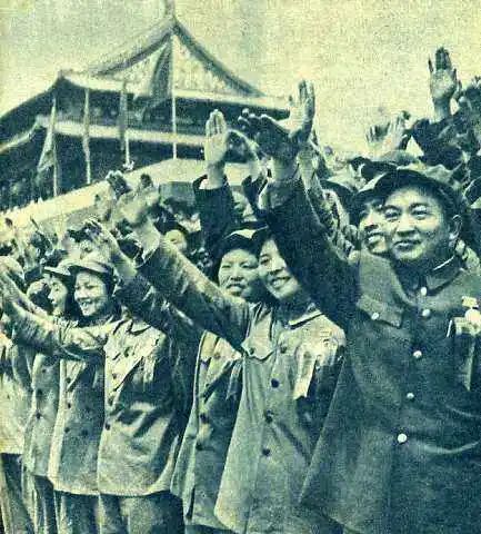 1953年国庆节在天安门的志愿军归国观礼代表团,已佩戴“中国人民志愿军”胸章
