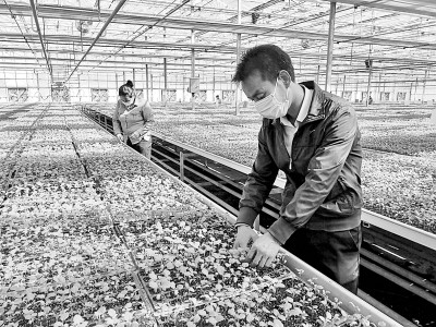新疆喀什地区莎车县扶贫产业园里的工人正在育苗。光明日报记者 王瑟摄/光明图片