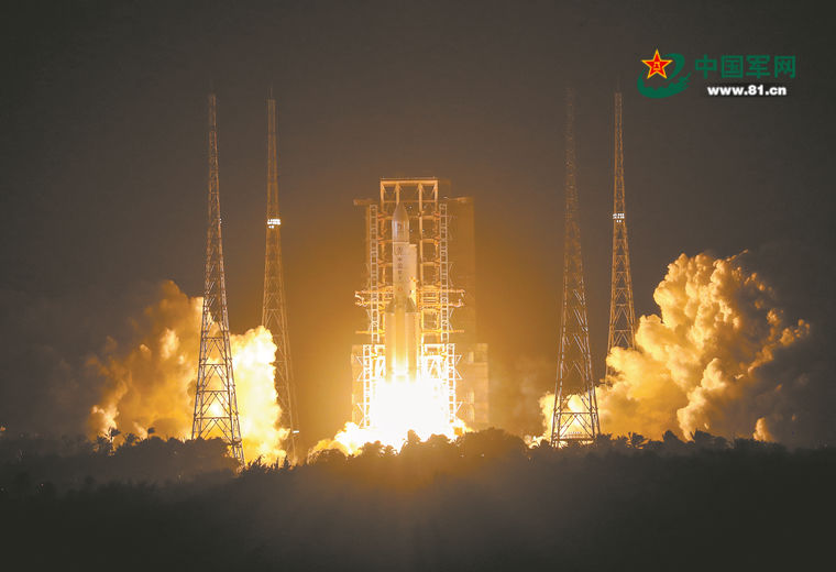 长征五号遥五运载火箭发射场景。解放军报记者 王卫东摄