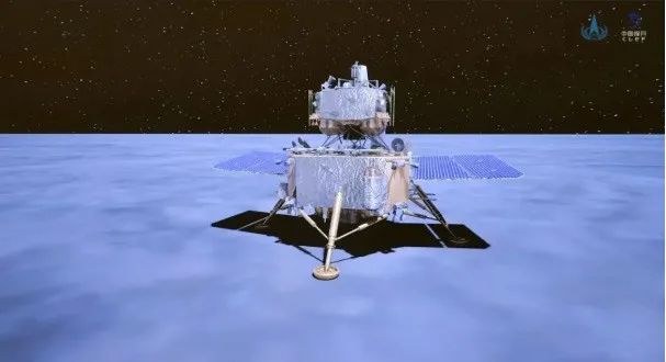 月面上的嫦娥五号着陆器与上升器组合体示意图