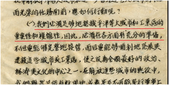 信中呼吁知识分子和社会贤达要向自己的亲友和所属员工说明解放军的城市政策,并且督率所属保护公共财产和档案文件。虽然信的末尾并没有注明日期,但是根据内容可以判断出,这封信应是写在1948年12月22日,中国人民解放军平津前线司令部发出的《约法八章》的布告前后。(《约法八章》是毛泽东主席在1948年12月中旬为中央军委起草的,是对当时人民解放军已经接管的几百座大小城市工作经验的总结,宣布了中国共产党城市工作的各项政策。)